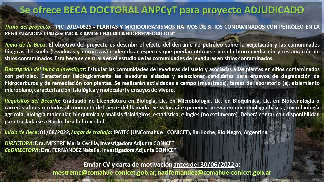 Se recibirán CV y cartas de intención hasta el 30 de junio (natifernandez@comahue-conicet.gob.ar o mestremc@comahue-conicet.gob.ar).