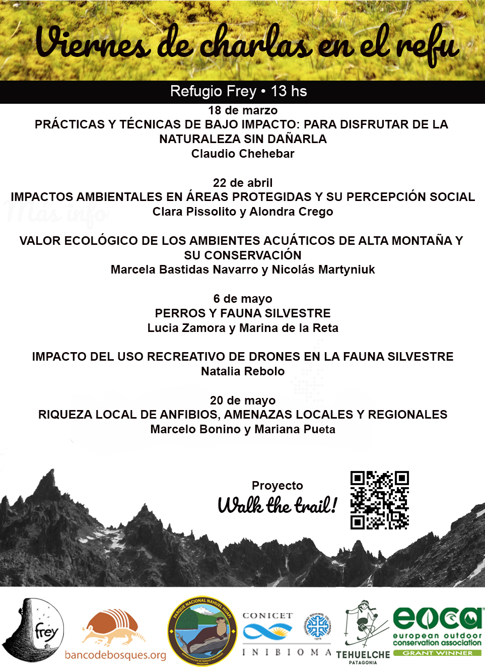 En el marco del proyecto Walk the trail! tenemos el agrado de hacer llegar invitación al ciclo de charlas a realizarse en el Refugio Frey en los meses de marzo-mayo.