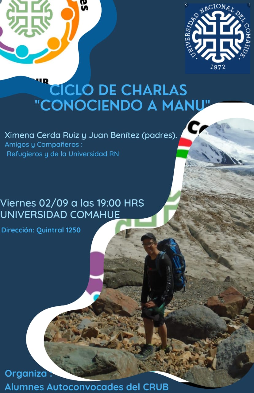 Alumnes Autovoncovades del CRUB convocan a una charla del ciclo “Conociendo a Manu”, que se realizará el viernes 2 de septiembre en la UNCo Bariloche, Quintral 1250.