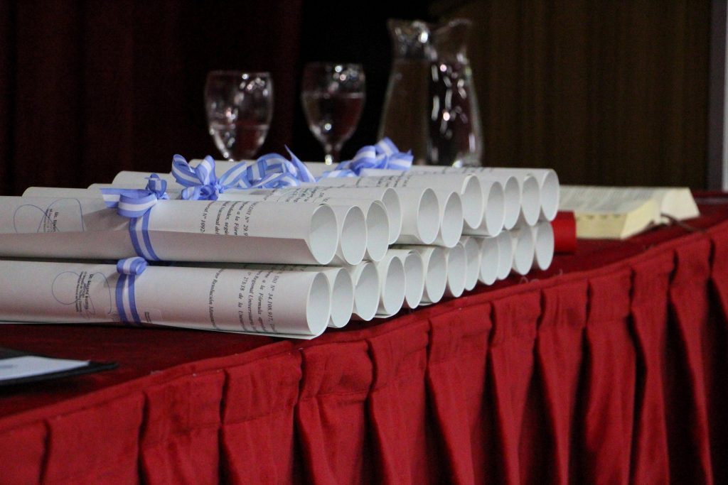 En este emotivo acto, graduados y graduadas del Doctorado en Biología, Licenciatura en Ciencias Biológicas, Licenciatura en Enfermería, Profesorado en Educación Física, Profesorado Universitario en Matemática, Enfermería y el Doctorado en Historia, juraron según sus preferencias y recibieron su título de mano de la rectora de la Universidad Nacional del Comahue, Beatriz Gentile; el vicerrector Paul Osovnikar; el decano del Centro Regional Universitario Bariloche Marcelo Alonso y la secretaria Académica del CRUB Mariana Pueta.